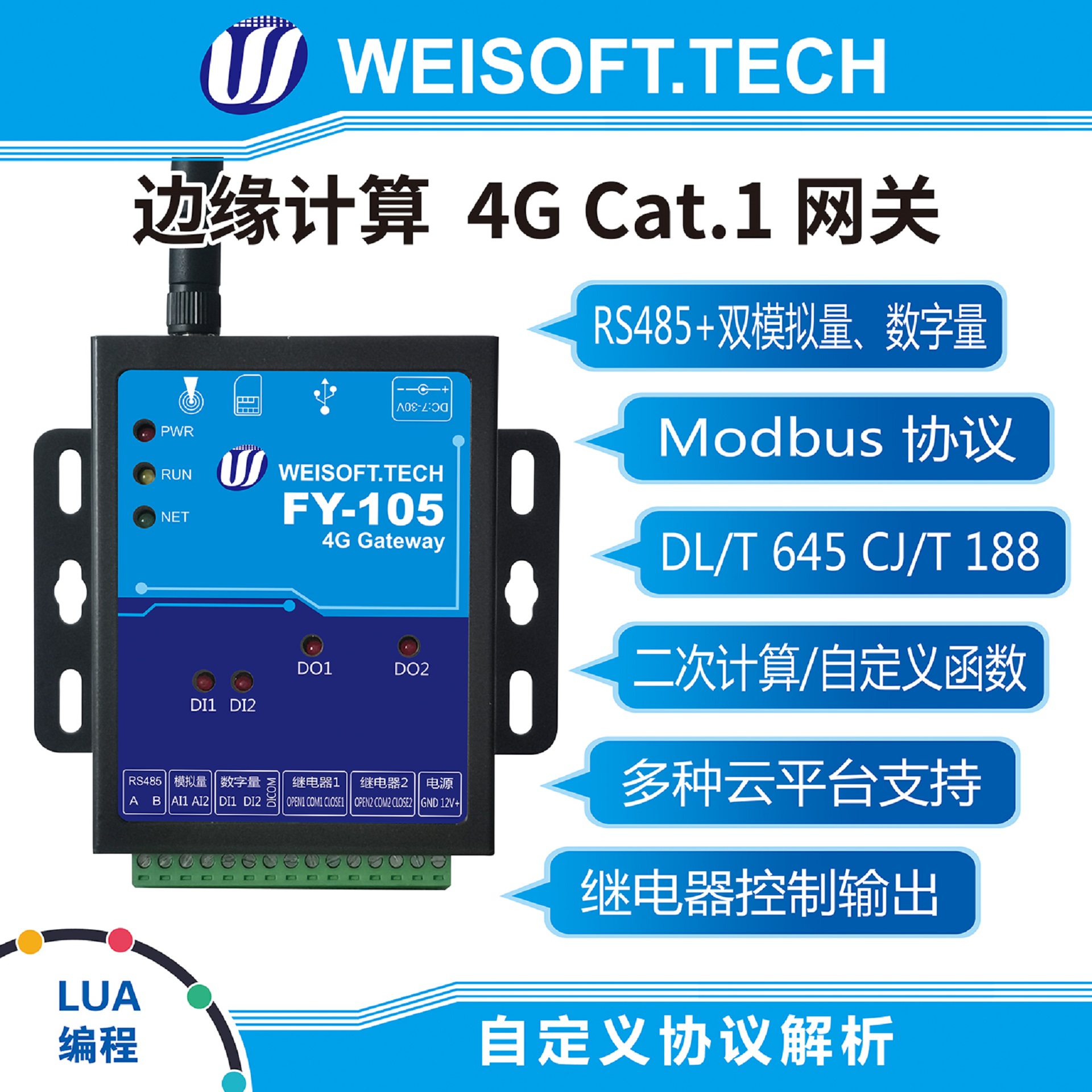FY-105 是集串口通信、模拟量数据采集、数字量数据采集、和继电器控制输出为一体的边缘计算网关。其中